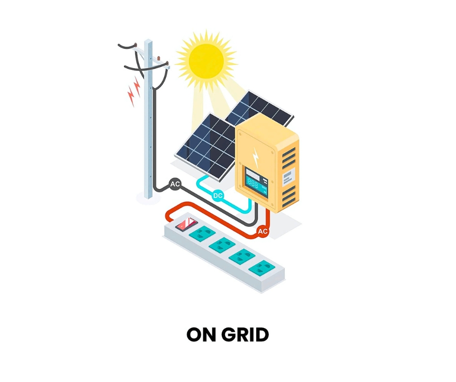 ON-GRID SOLAR SYSTEM An on-grid solar system also called grid-tied connects directly to your local electricity grid. It uses solar panels to power your home during the day, while any excess energy is sent back to the grid often earning you credits through net metering. At night or on cloudy days, you automatically draw power from the grid.