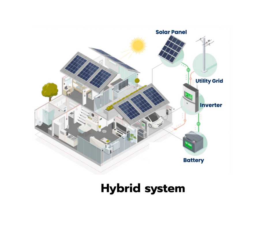 HYBRID-SOLAR SYSTEM combines the best features of on-grid and off-grid systems, giving you energy independence with grid backup. It uses solar panels to power your home, stores excess energy in battery storage for later use, and remains connected to the grid for additional reliability when needed